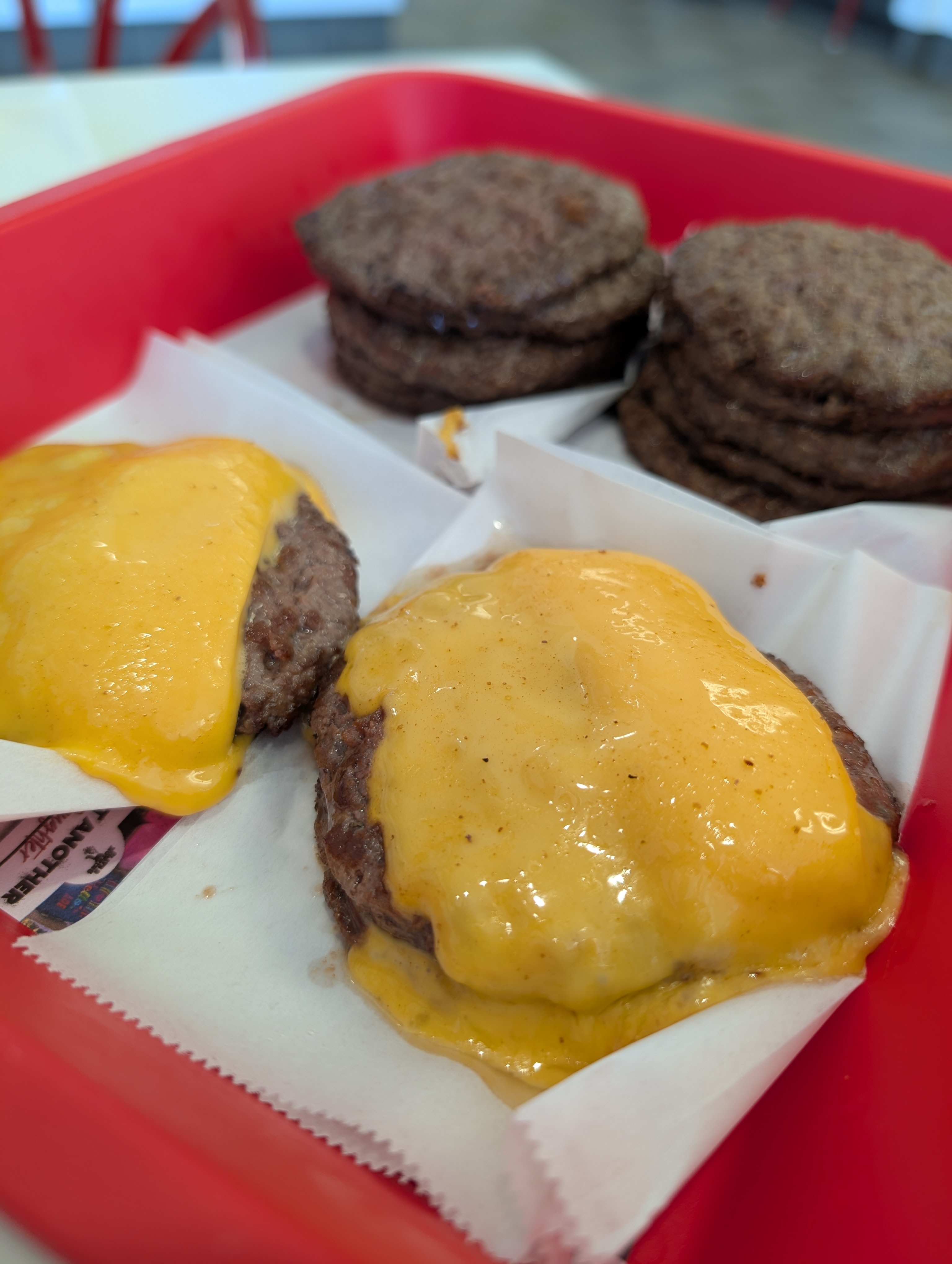 This past Sunday I had the rare occasion of going out to eat for lunch by myself. In N Out was on the menu so I placed my standard order of 2 flying Dutchmen and 10 meat patties. They called my number and when I picked it up at the counter, the girl tried to give me 8 forks. I asked for just 1 and said, "it's just for me". She looked so confused haha. I still do one meal a day and 14 burger patties seems like a lot but it's only 1.75 pounds of beef and 4 slices of cheese. A lot for 1 sitting for most people, but not bad for me. I've always been a volume eater and this amount makes me feel the fullness I need to get me through until morning.
