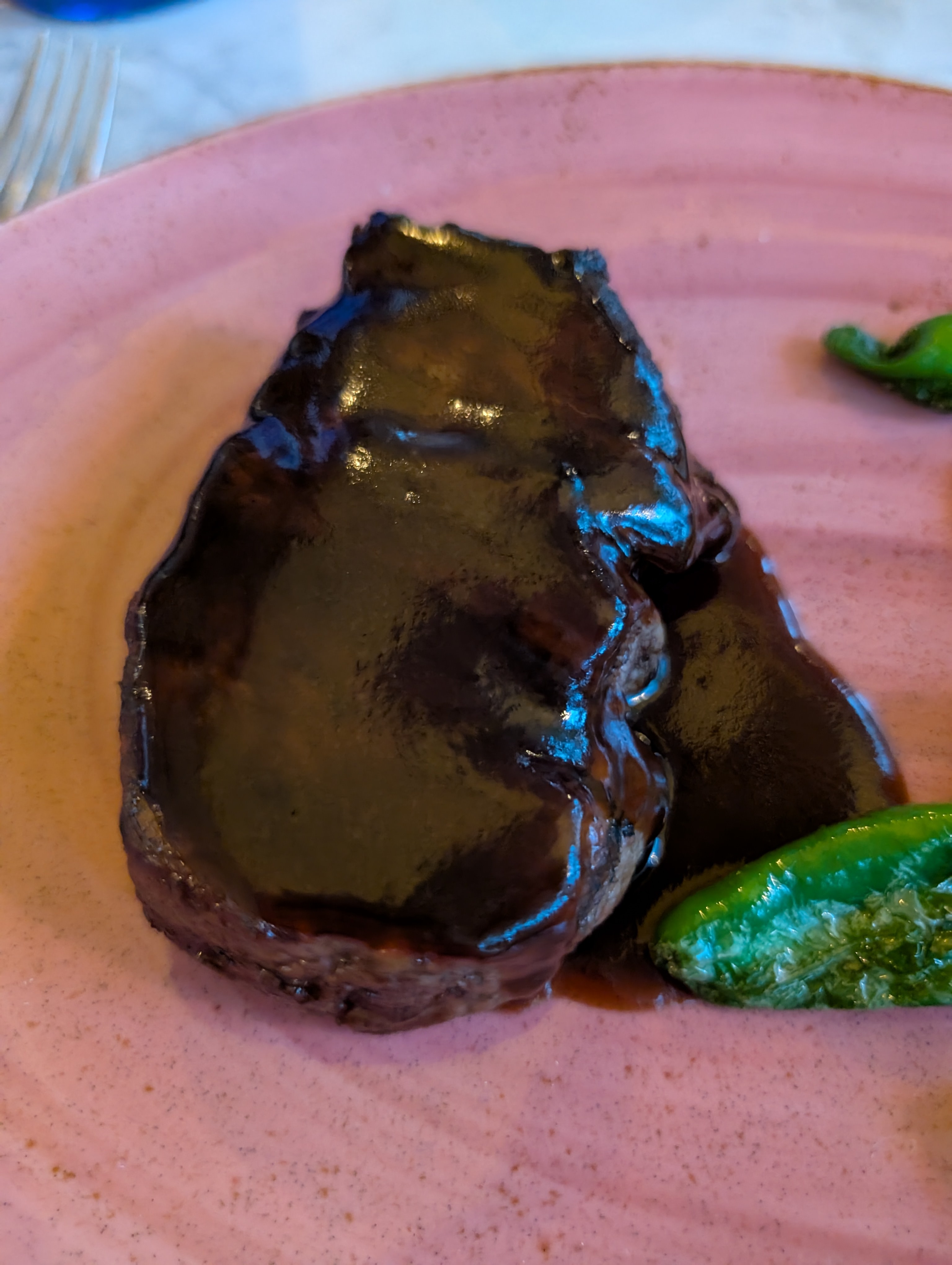 Well the marinated steak now tastes like it was swimming in sweet coffee and not just black coffee. It had sugar for sure. But I ate it. I was super hungry. Not an excuse though. I should've asked for a steak without it. Too late now. My back is telling me.